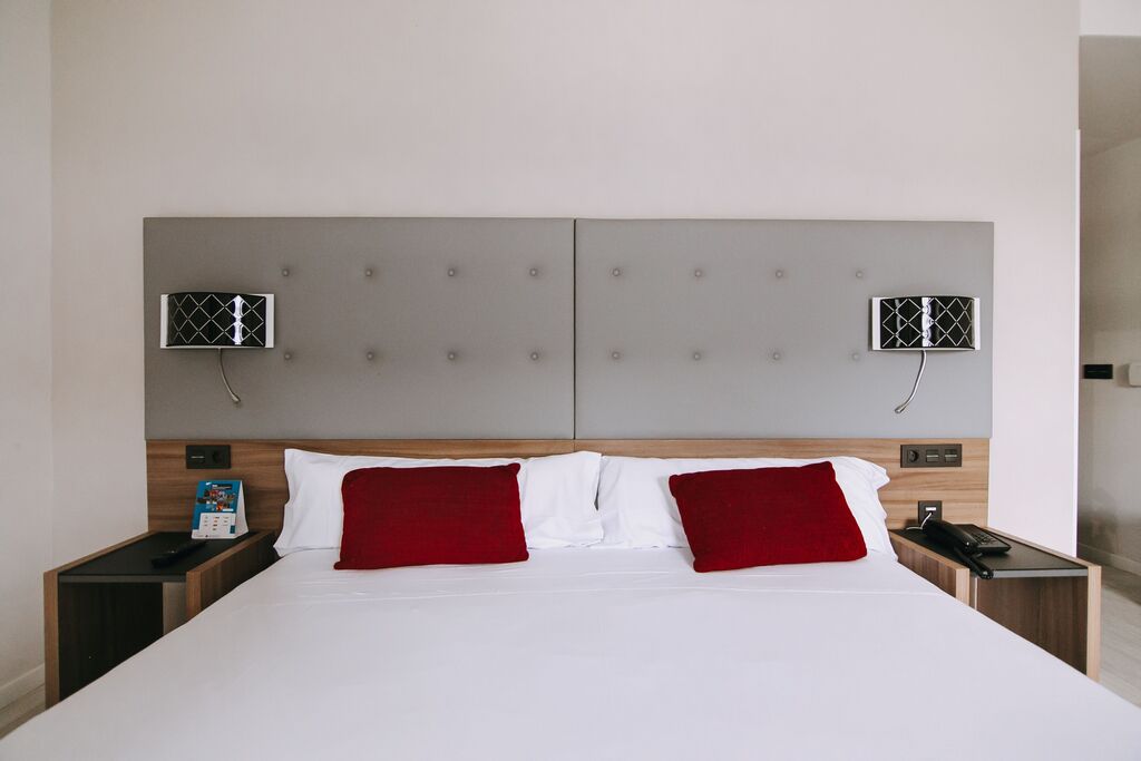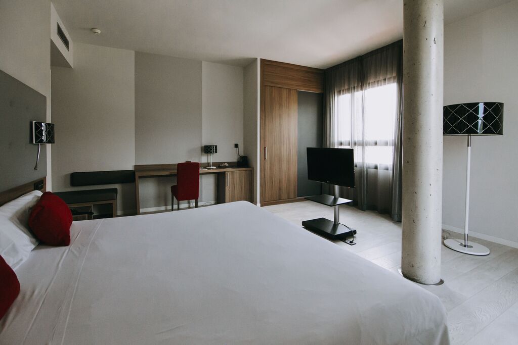 Disfrute de la amplitud y el confort superior en nuestra habitación más espaciosa. Una cama de matrimonio de 2x2 metros le garantiza un descanso reparador. El baño, diseñado para su comodidad, cuenta con plato de ducha y bañera. Funcionalidad y bienestar se combinan para ofrecerle una estancia inigualable. La cama supletoria tiene un suplemento de 33€ por noche y está sujeta a disponibilidad. Cunas gratuitas para niños menores de 3 años sujetas a disponibilidad.